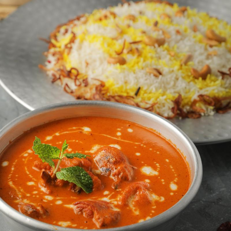 يجمع عيش مشخول مع بتر تشيكن (صينية) بين نكهتين محبوّبتين؛ العيش المفلفل الكويتي والبتر تشيكن الغني بالتوابل الهندية. يتميز الطبق بتوازن رائع بين الأرز العطِر وصلصة الدجاج الكريمية.